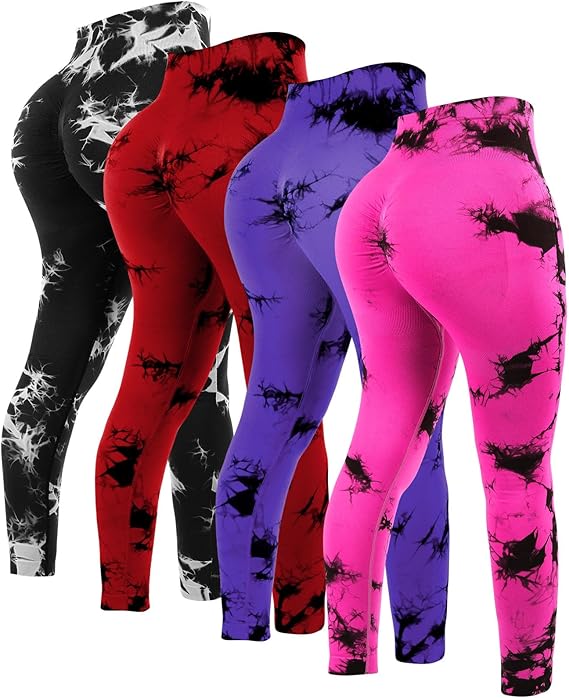 4 Pcs Womens Workout Leggings Tie Dye High Waisted Yoga Pants Seamless Scrunch Butt Lifting Compression Tights