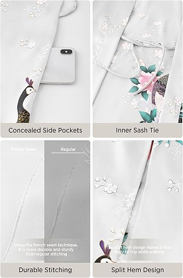 Indulge in timeless elegance with the BABEYOND Women’s Kimono Robe, designed with stunning peacock and blossom prints that symbolize grace and beauty. Made from silky, lightweight satin, this long robe drapes effortlessly, making it perfect as nightwear, loungewear, or a stylish cover-up for special occasions. Its kimono-inspired cut combines comfort with sophistication, creating a luxurious feel for every woman.