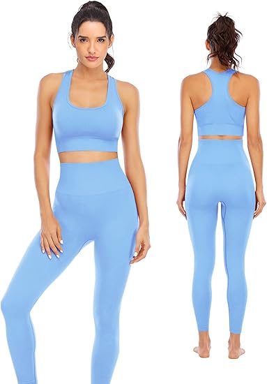 Workout Sets for Women 2 Piece High Waisted Seamless Leggings with Padded Stretchy Sports Bra Sets Gym Clothes